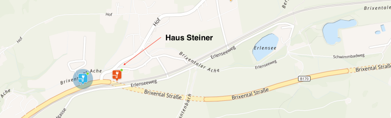 Op 100 m aftand van Haus Steiner bij de ingang van de Sportschool is een snellader ( rood op de kaart ) en op 150 m bij Elektro Klockner 4 X 22 KW laadpalen ( blauw op de kaart ).