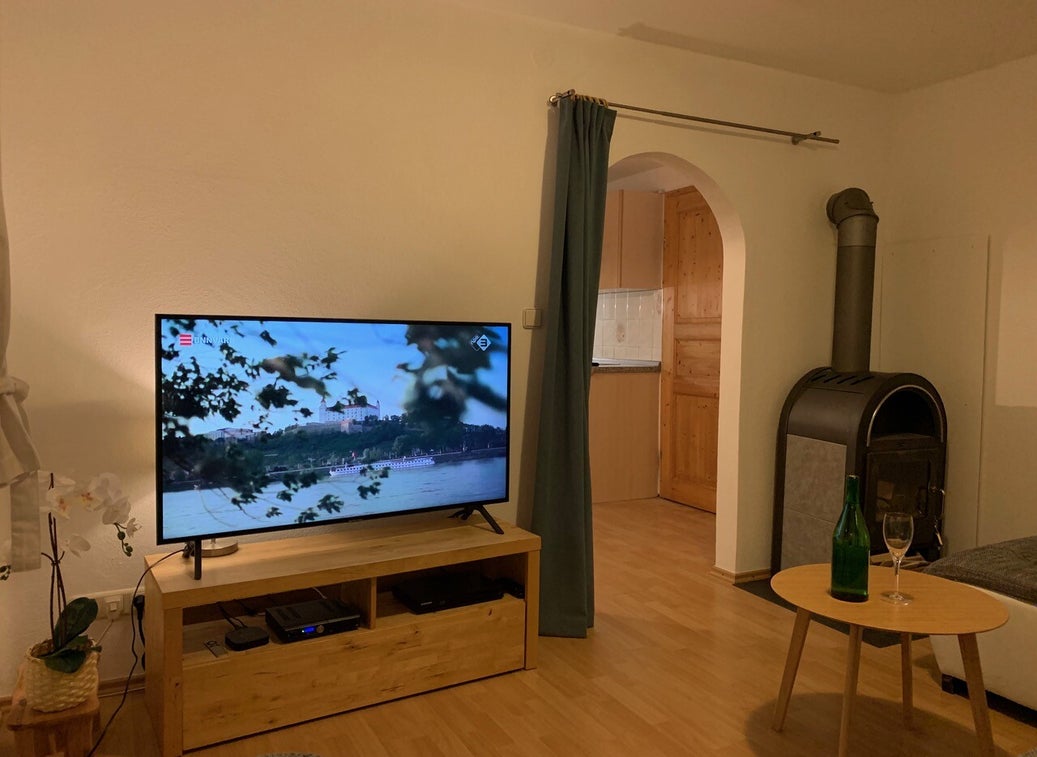 Es gibt einen dekorativen Herd. Es gibt einen großen (gemeinsamen) umzäunten Garten mit einer Terrasse entlang des Baches. Sie können Gartenmöbel, Liegestühle und Grill benutzen. Reservierte Parkplätze am Haus und die Nutzung des Carports sind für Apartment 2 reserviert