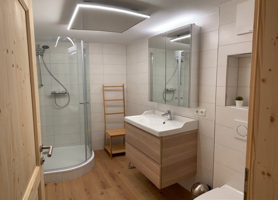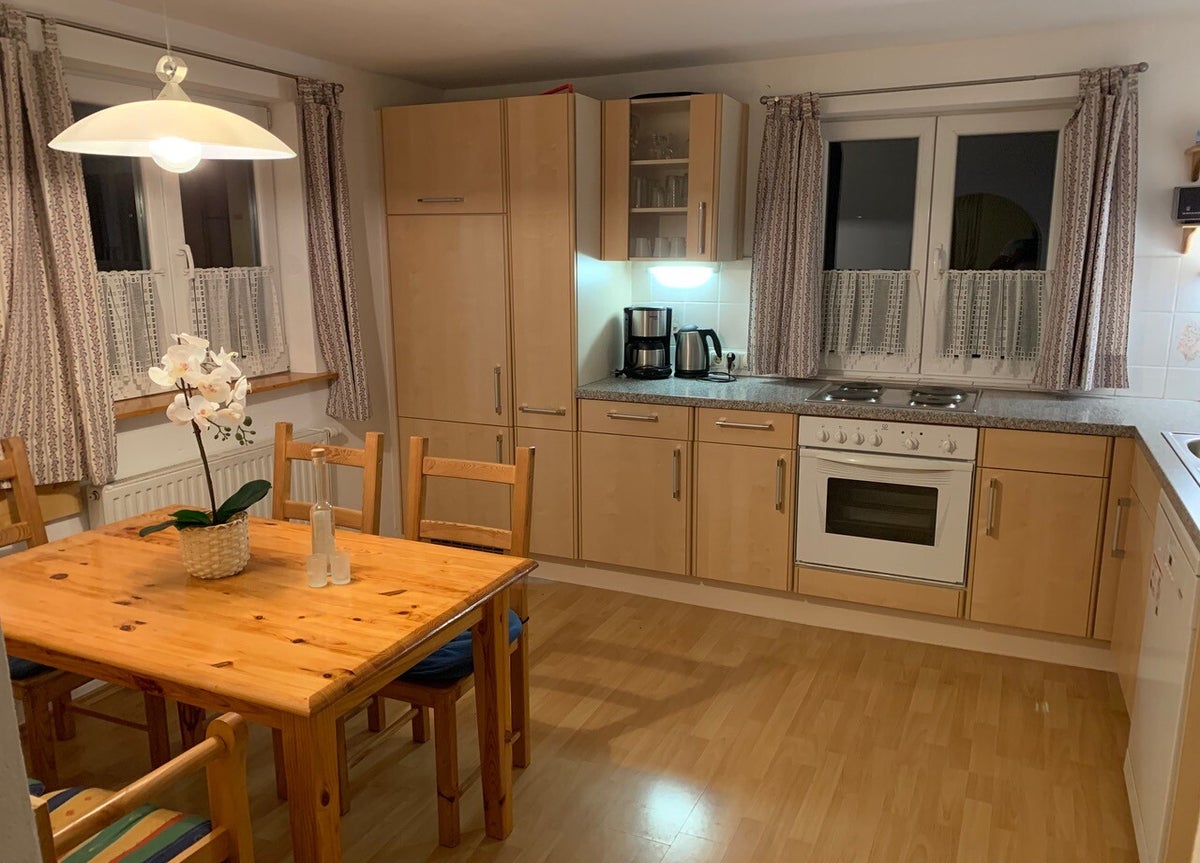 Het appartement in Huis Steiner bevindt zich op de 1e verdieping en heeft een badkamer met douche, open keuken met afwasmachine en woonkamer met comfortabele lounge bank (slaapbank), TV met Nederlandse zenders en DVD-speler. Er is een sierkachel. Er is een grote (gedeelde) omheinde tuin met terras langs de beek. U kunt gebruik maken van tuinmeubels, ligstoelen en barbecue. Gereserveerde parkeerplaatsen bij het huis en gebruik van de Carport is gereserveerd voor appartement 2